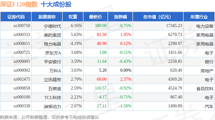 资金流向方面,深证F120(399702)指数成份股当日主力资金净流出合计69.52亿元,游资资金净流入合计8.94亿元,散户资金净流入合计60.58亿元。成份股资金流向详情见下表: