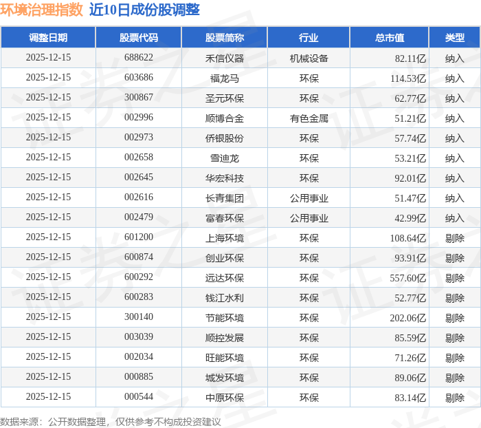 近10日内环境治理(399806)指数成份股做了调整,新纳入了9只股票,剔除了9只股票。