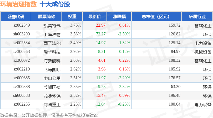 资金流向方面,环境治理(399806)指数成份股当日主力资金净流出合计2.88亿元,游资资金净流入合计8005.37万元,散户资金净流入合计2.08亿元。成份股资金流向详情见下表: