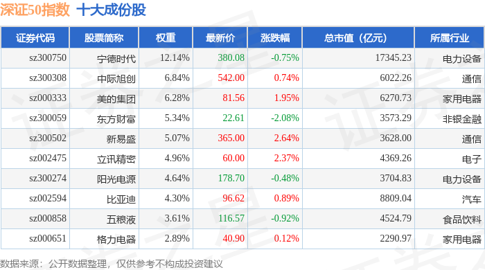 证券之星消息,12月2日,深证50(399850)指数报收于9060.26点,跌0.33%,成交1205.94亿元,换手率1.13%。当日该指数成份股中,上涨的有11家,新易盛以2.64%的涨幅领涨,下跌的有38家,昆仑万维以3.75%的跌幅领跌。