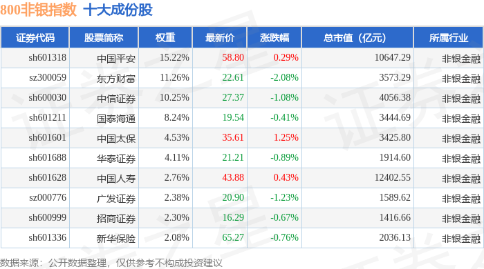 近10日内800非银(399966)指数成份股做了调整,剔除了1只股票。
