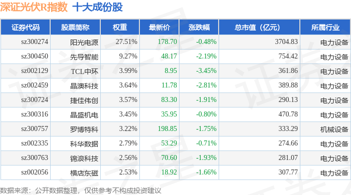 深证光伏R(470035)指数十大成份股详情如下: