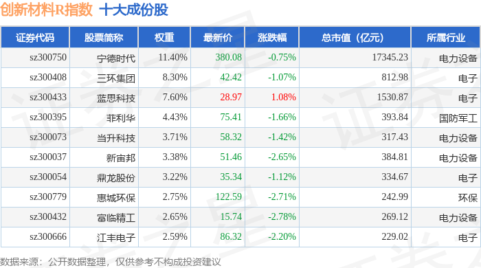 创新材料R(470039)指数十大成份股详情如下: