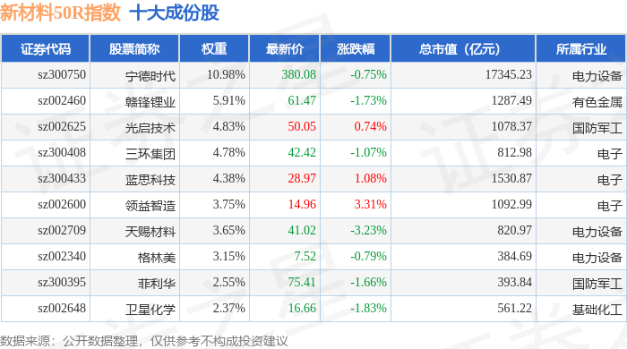 近10日内新材料50R(470042)指数成份股做了调整,新纳入了1只股票,剔除了1只股票。