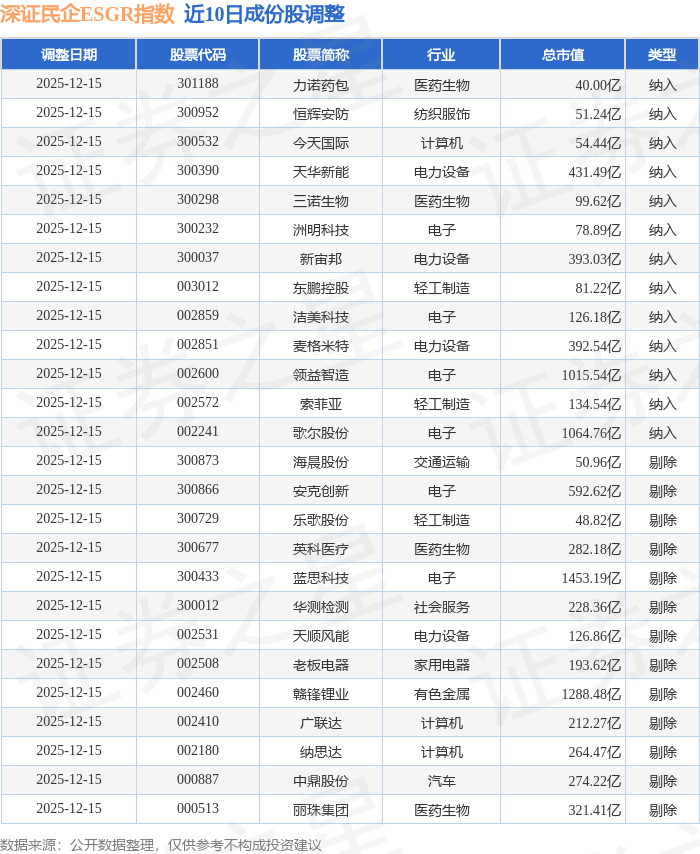 近10日内深证民企ESGR(470056)指数成份股做了调整,新纳入了13只股票,剔除了13只股票。