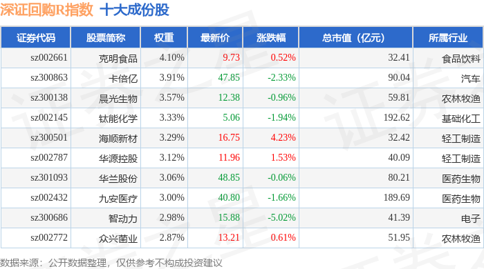深证回购R(470063)指数十大成份股详情如下: