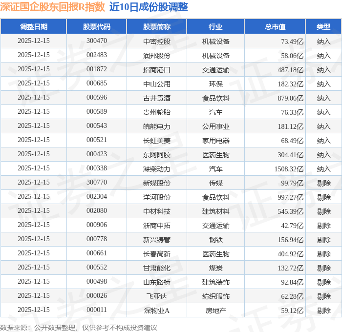 近10日内深证国企股东回报R(470064)指数成份股做了调整,新纳入了10只股票,剔除了10只股票。