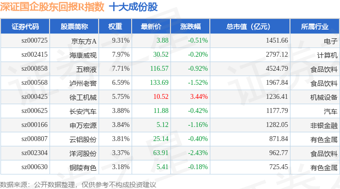 深证国企股东回报R(470064)指数十大成份股详情如下: