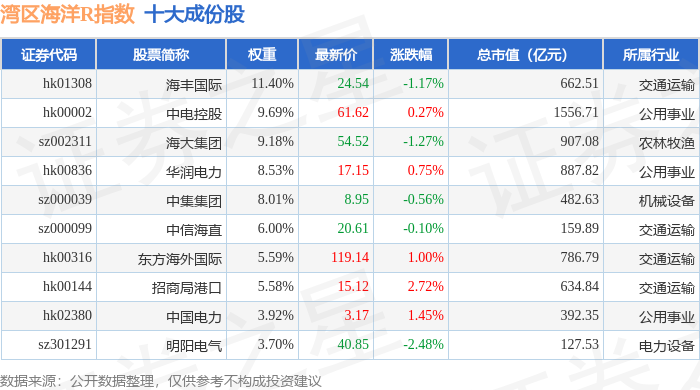 近10日内湾区海洋R(480019)指数成份股做了调整,新纳入了2只股票。