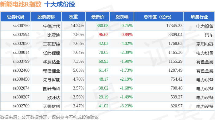 近10日内新能电池R(480032)指数成份股做了调整,新纳入了2只股票。