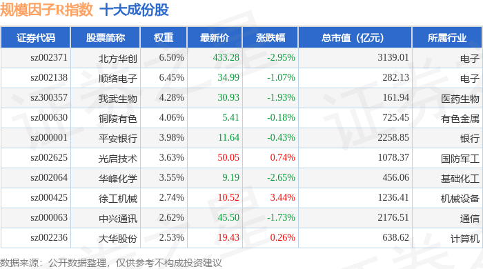 证券之星消息,12月2日,规模因子R(480055)指数报收于2296.33点,跌0.95%,成交541.4亿元,换手率1.34%。当日该指数成份股中,上涨的有7家,迈为股份以4.6%的涨幅领涨,下跌的有41家,东方精工以4.5%的跌幅领跌。
