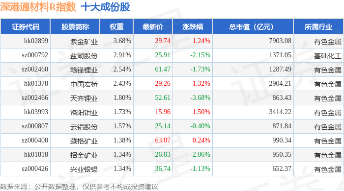 深港通材料R(483015)指数十大成份股详情如下: