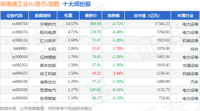 深港通工业R(港币)(483018)指数十大成份股详情如下: