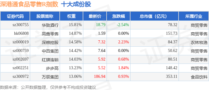 深港通食品零售R(483037)指数十大成份股详情如下: