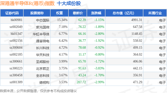 深港通半导体R(港币)(483068)指数十大成份股详情如下: