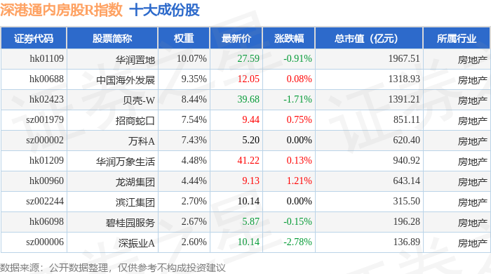 资金流向方面,深港通内房股R(483083)指数成份股当日主力资金净流入合计3.82亿元,游资资金净流出合计1.48亿元,散户资金净流出合计2.34亿元。成份股资金流向详情见下表: