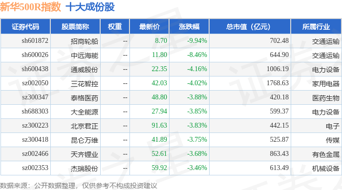 证券之星消息,12月2日,新华500R(489001)指数报收于7389.24点,跌0.53%,成交4830.47亿元,换手率0.55%。当日该指数成份股中,上涨的有124家,传音控股以8.47%的涨幅领涨,下跌的有355家,招商轮船以9.94%的跌幅领跌。