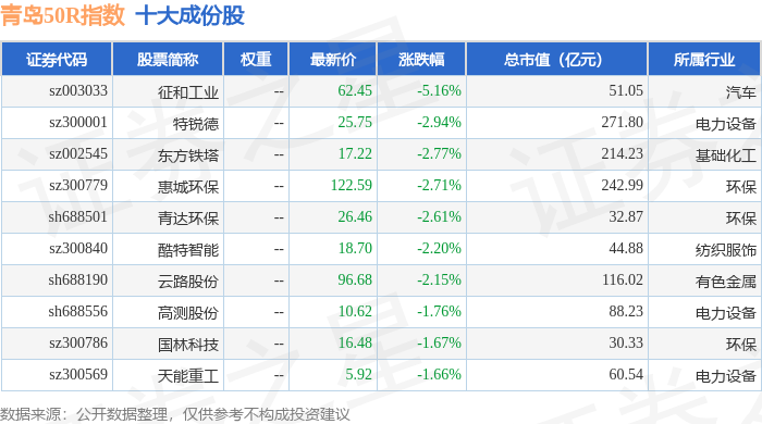 资金流向方面,青岛50R(489011)指数成份股当日主力资金净流出合计1.53亿元,游资资金净流出合计5820.43万元,散户资金净流入合计2.11亿元。成份股资金流向详情见下表:
