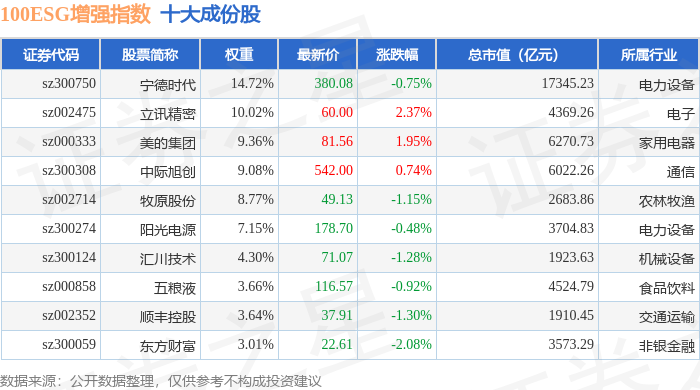 100ESG增强(970033)指数十大成份股详情如下: