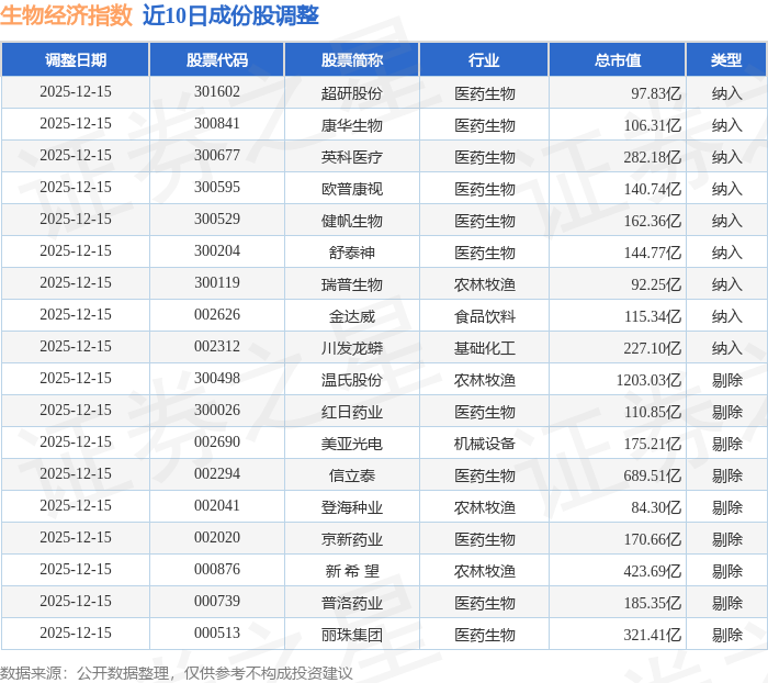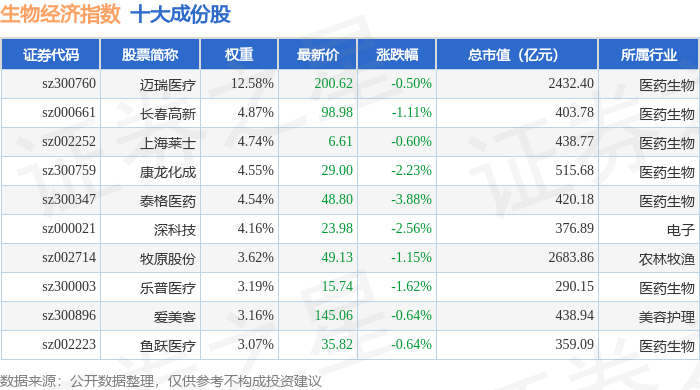 生物经济(970038)指数十大成份股详情如下: