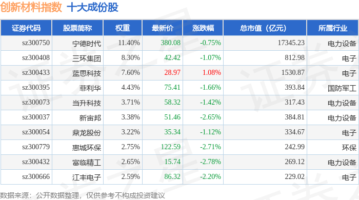 近10日内创新材料(970039)指数成份股做了调整,新纳入了5只股票,剔除了5只股票。