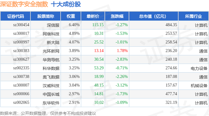 深证数字安全(970052)指数十大成份股详情如下: