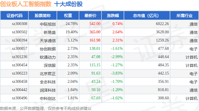 近10日内创业板人工智能(970070)指数成份股做了调整,新纳入了2只股票,剔除了2只股票。