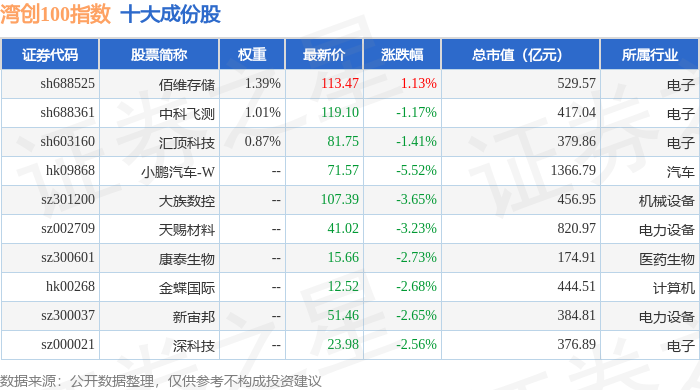 湾创100(980001)指数十大成份股详情如下: