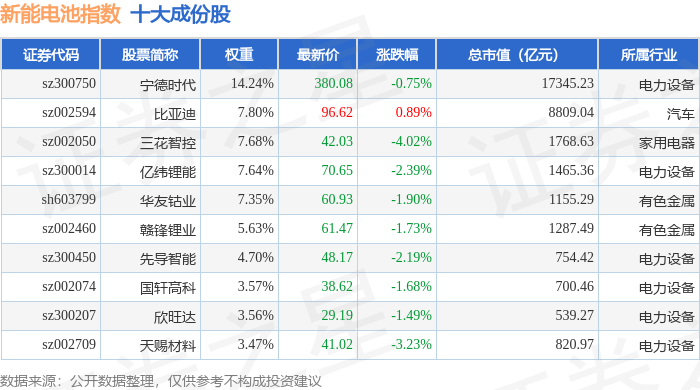 近10日内新能电池(980032)指数成份股做了调整,新纳入了2只股票。