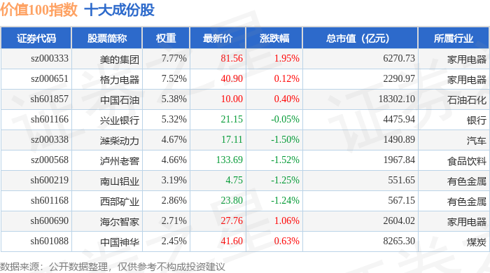 资金流向方面,价值100(980081)指数成份股当日主力资金净流出合计15.62亿元,游资资金净流出合计2.26亿元,散户资金净流入合计17.82亿元。成份股资金流向详情见下表: