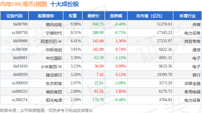 近10日内内地100(港币)(983002)指数成份股做了调整,新纳入了4只股票。