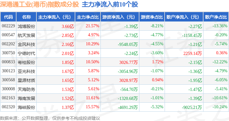 资金流向方面,深港通工业(港币)(983018)指数成份股当日主力资金净流出合计51.62亿元,游资资金净流入合计6.94亿元,散户资金净流入合计44.68亿元。成份股资金流向详情见下表: