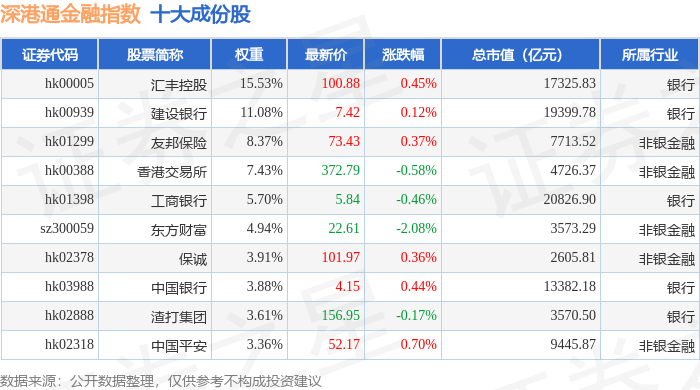 证券之星消息,12月2日,深港通金融(983025)指数报收于7303.15点,跌0.17%,成交251.32亿元,换手率0.26%。当日该指数成份股中,上涨的有37家,渤海租赁以3.63%的涨幅领涨,下跌的有51家,海德股份以4.75%的跌幅领跌。