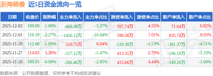 12月2日的资金流向数据方面,主力资金净流出469.38万元,占总成交额5.37%,游资资金净流入397.74万元,占总成交额4.55%,散户资金净流入71.64万元,占总成交额0.82%。
