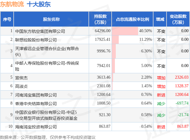 根据东航物流2025年三季报公布的十大股东详情如下: