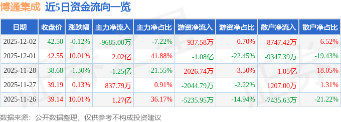 12月2日的资金流向数据方面,主力资金净流出9685.0万元,占总成交额7.22%,游资资金净流入937.58万元,占总成交额0.7%,散户资金净流入8747.42万元,占总成交额6.52%。