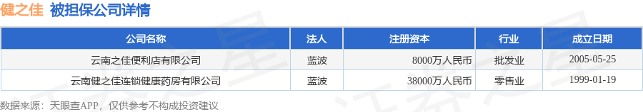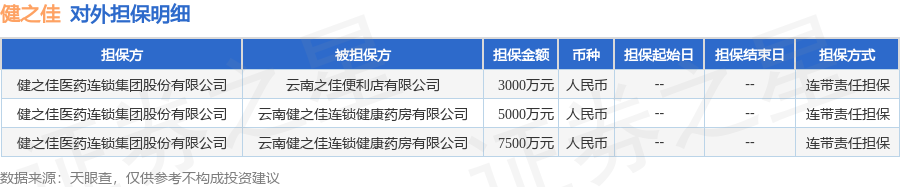健之佳12月1日披露3笔对外担保,被担保公司2家。对外担保明细如下表: