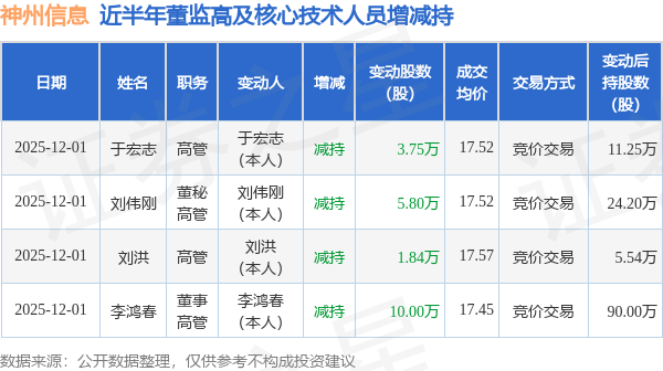 神州信息近半年内的董监高及核心技术人员增减持详情如下: