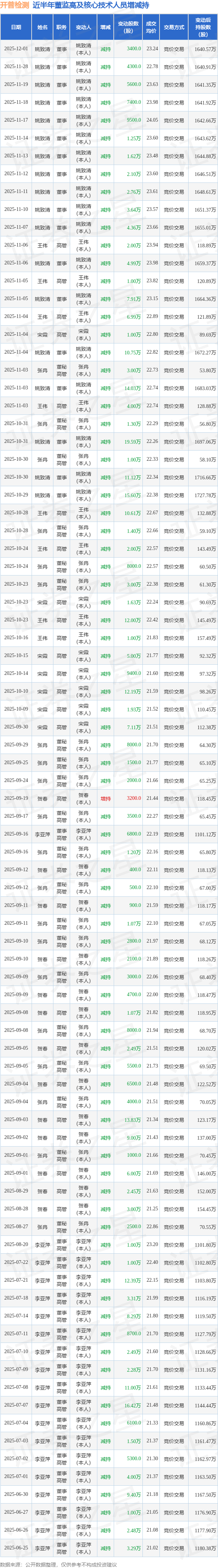 开普检测近半年内的董监高及核心技术人员增减持详情如下: