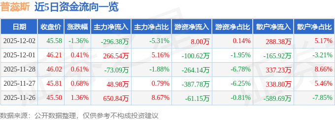 12月2日的资金流向数据方面,主力资金净流出296.38万元,占总成交额5.31%,游资资金净流入8.0万元,占总成交额0.14%,散户资金净流入288.38万元,占总成交额5.17%。