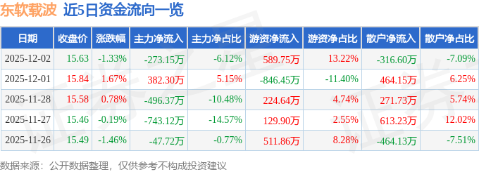 证券之星消息,截至2025年12月2日收盘,东软载波(300183)报收于15.63元,下跌1.33%,换手率0.7%,成交量2.85万手,成交额4462.74万元。