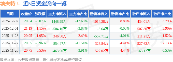 12月2日的资金流向数据方面,主力资金净流出1448.29万元,占总成交额12.65%,游资资金净流入1014.28万元,占总成交额8.86%,散户资金净流入434.01万元,占总成交额3.79%。