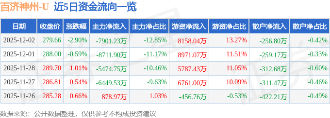 证券之星消息,截至2025年12月2日收盘,百济神州(688235)报收于279.66元,下跌2.9%,换手率1.9%,成交量2.19万手,成交额6.15亿元。