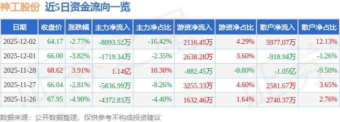 12月2日的资金流向数据方面,主力资金净流出8093.52万元,占总成交额16.42%,游资资金净流入2116.45万元,占总成交额4.29%,散户资金净流入5977.07万元,占总成交额12.13%。