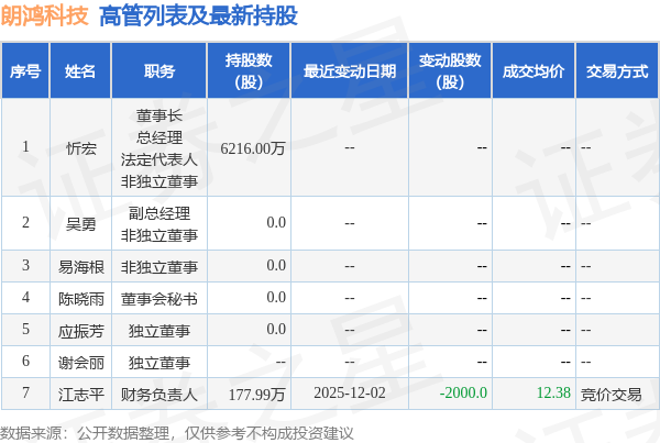 朗鸿科技近半年内的董监高及核心技术人员增减持详情如下: