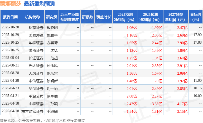 以下是详细的盈利预测信息: