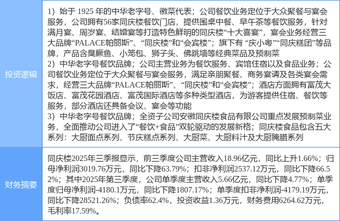 该股为餐饮,预制菜,旅游概念热股,当日餐饮概念上涨0.82%,预制菜概念上涨0.26%。