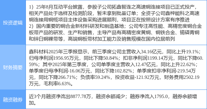 该股为有色 · 铜,有色金属,铜缆高速连接器概念热股,当日有色 · 铜概念上涨0.51%,有色金属概念上涨0.18%。