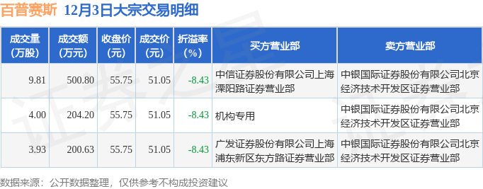 证券之星消息,12月3日百普赛斯发生大宗交易,交易数据如下:
