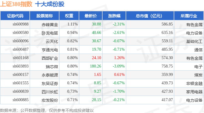 证券之星消息,12月3日,上证380(000009)指数报收于6246.5点,跌0.45%,成交1144.29亿元,换手率1.19%。当日该指数成份股中,上涨的有136家,福蓉科技以10.01%的涨幅领涨,下跌的有237家,莱斯信息以9.85%的跌幅领跌。